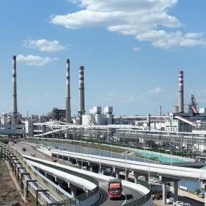 6月10日,車(chē)輛從河北省唐山市海港經(jīng)濟開(kāi)發(fā)區文化大街跨鐵路專(zhuān)線(xiàn)立交橋上通過(guò)(無(wú)人機照片)。