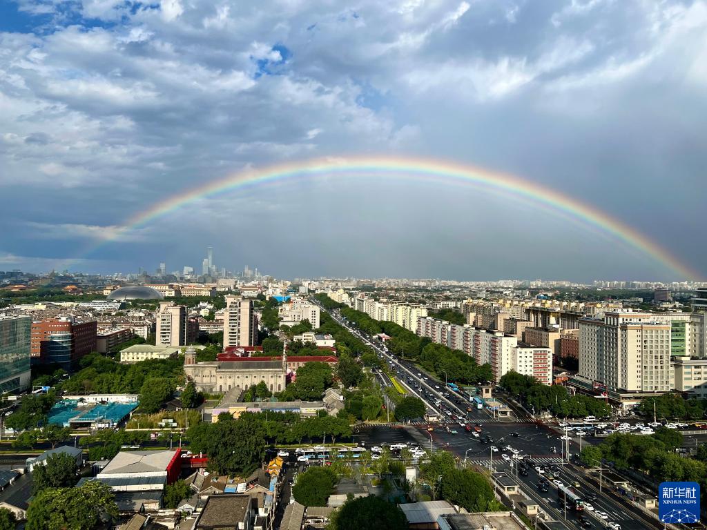 當日,一場(chǎng)降雨過(guò)后,北京上空出現彩虹。