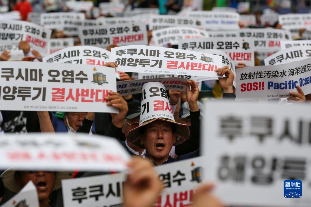 來(lái)自韓國各地的數千名漁民12日在首爾國會(huì )議事堂附近舉行大規模集會(huì ),強烈反對日本福島核污染水排海,同時(shí)敦促韓國政府積極保護韓國漁民權益。新華社記者 王益亮 攝