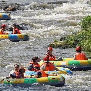 江西南昌連日高溫,人們來(lái)到郊外峽谷山澗,體驗漂流旅游項目,親近自然山水,享受夏日清涼。