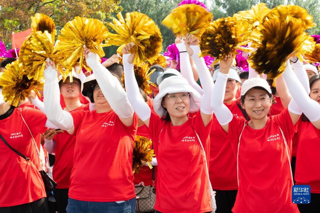 7月8日,在哈爾濱市太陽(yáng)島景區太陽(yáng)石廣場(chǎng),人們慶祝哈爾濱市獲得2025年第九屆亞洲冬季運動(dòng)會(huì )舉辦權。