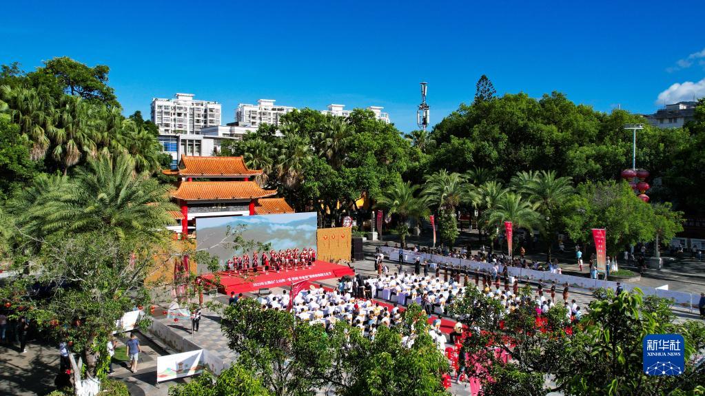 這是7月8日拍攝的五指山“上山爽一夏 故園·畢業(yè)季”暨州府故園文化節啟動(dòng)儀式現場(chǎng)(無(wú)人機照片)。