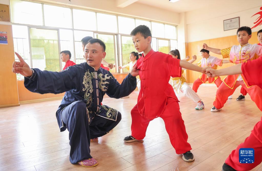 7月8日,在山東省臨沂市蘭山區一家武術(shù)館,武術(shù)老師指導學(xué)員練習拳法動(dòng)作。