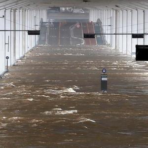 這是7月14日在韓國首爾拍攝的被水淹沒(méi)的潛水橋。