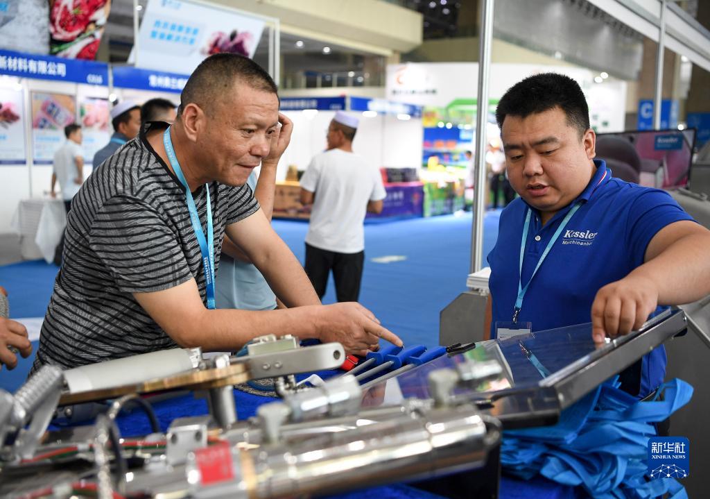 7月14日,采購商在博覽會(huì )現場(chǎng)了解肉類(lèi)加工設備。