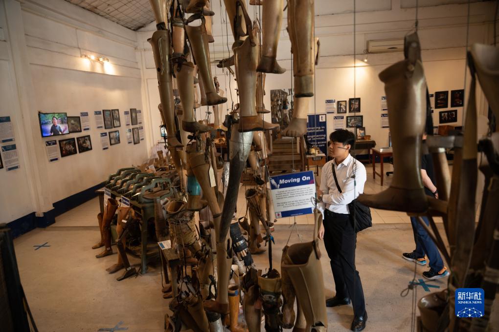 7月11日,一名男子在老撾首都萬(wàn)象“義肢與矯形合作事業(yè)”展館參觀(guān)老撾未爆彈受害者康復服務(wù)展。