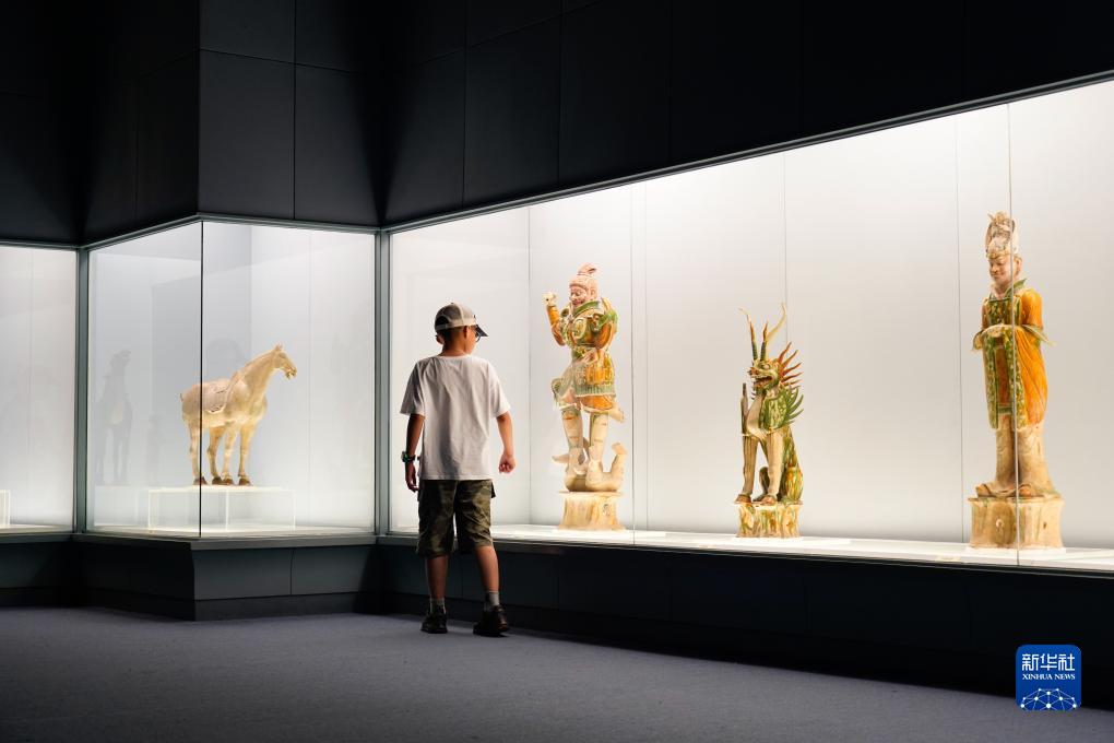 7月14日晚,小朋友在上海博物館的中國古代陶瓷館觀(guān)看展品。