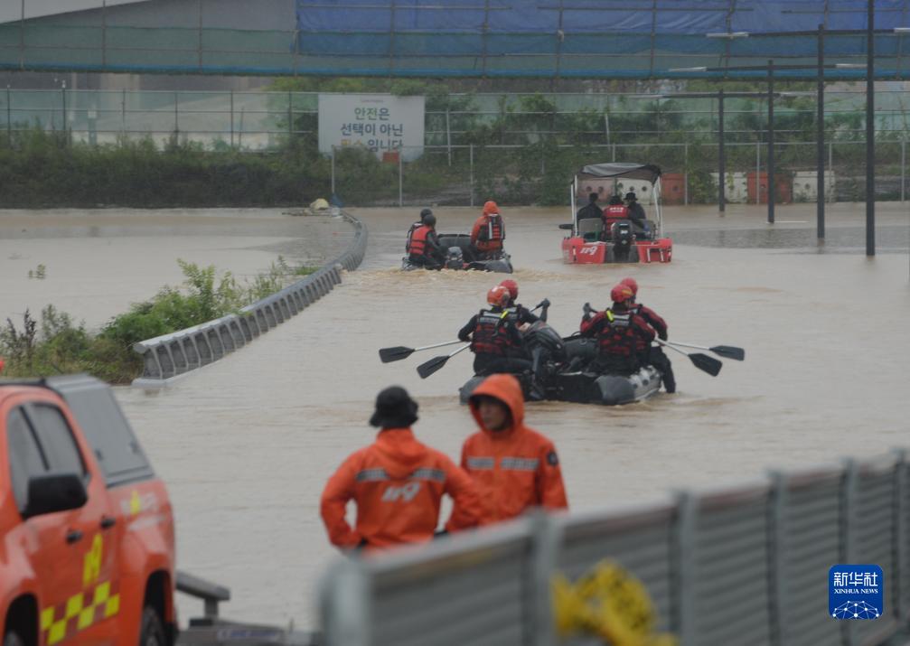 7月15日,在韓國忠清北道清州市,警察和消防人員進(jìn)行搜救工作。