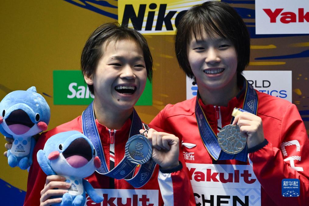 當日,在日本福岡舉行的2023年世界游泳錦標賽女單10米跳臺決賽中,中國選手陳芋汐、全紅嬋分別以457.85分與445.60分的成績(jì)包攬冠亞軍。