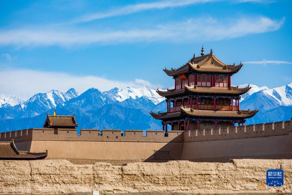 當日,位于甘肅河西走廊的嘉峪關(guān)市在一場(chǎng)疾風(fēng)驟雨后,天空放晴,遠處祁連雪山與嘉峪關(guān)關(guān)城交相輝映,構成一幅壯美畫(huà)卷。