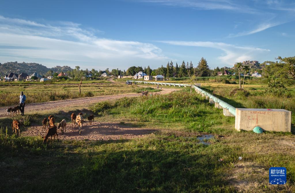 這是6月11日在坦桑尼亞姆萬(wàn)扎省薩哈一處沼澤地拍攝的供水項目輸水管道(無(wú)人機照片)。