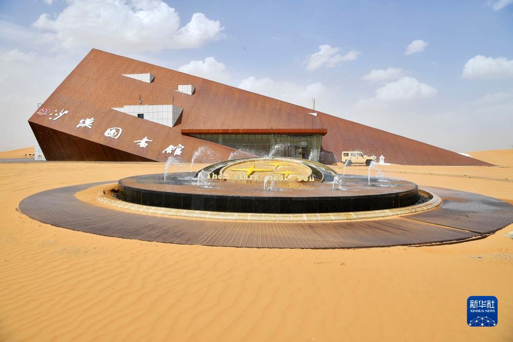 7月20日在寧夏中衛市騰格里沙漠大漠星河度假區拍攝的沙漠圖書(shū)館外景。