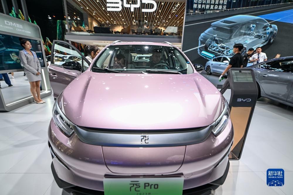 觀(guān)眾在長(cháng)春汽博會(huì )的比亞迪展位上咨詢(xún)和體驗元Pro(7月20日攝)。