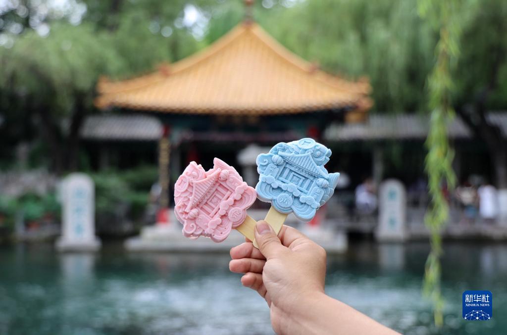 7月16日在山東省濟南市趵突泉景區拍攝的趵突泉造型文創(chuàng )雪糕。
