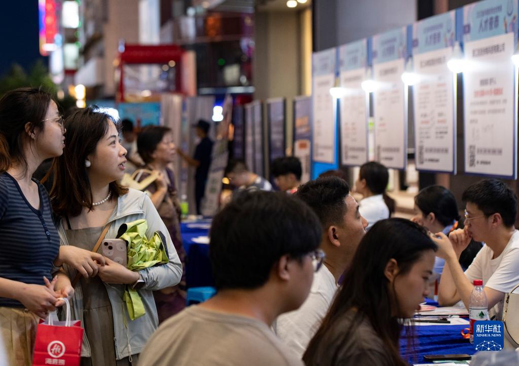 當日,浙江省金華市舉辦“人才夜市”高校畢業(yè)生專(zhuān)場(chǎng),多家生物醫藥、機械制造、新能源企業(yè)為求職者提供工作崗位,吸引了許多高校畢業(yè)生前往咨詢(xún)應聘。