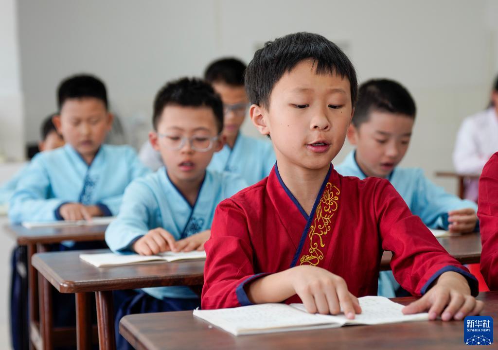 7月22日,萬(wàn)州區恒合土家族鄉一個(gè)研學(xué)基地內,參加暑期避暑研學(xué)活動(dòng)的學(xué)生在誦讀經(jīng)典古詩(shī)詞。