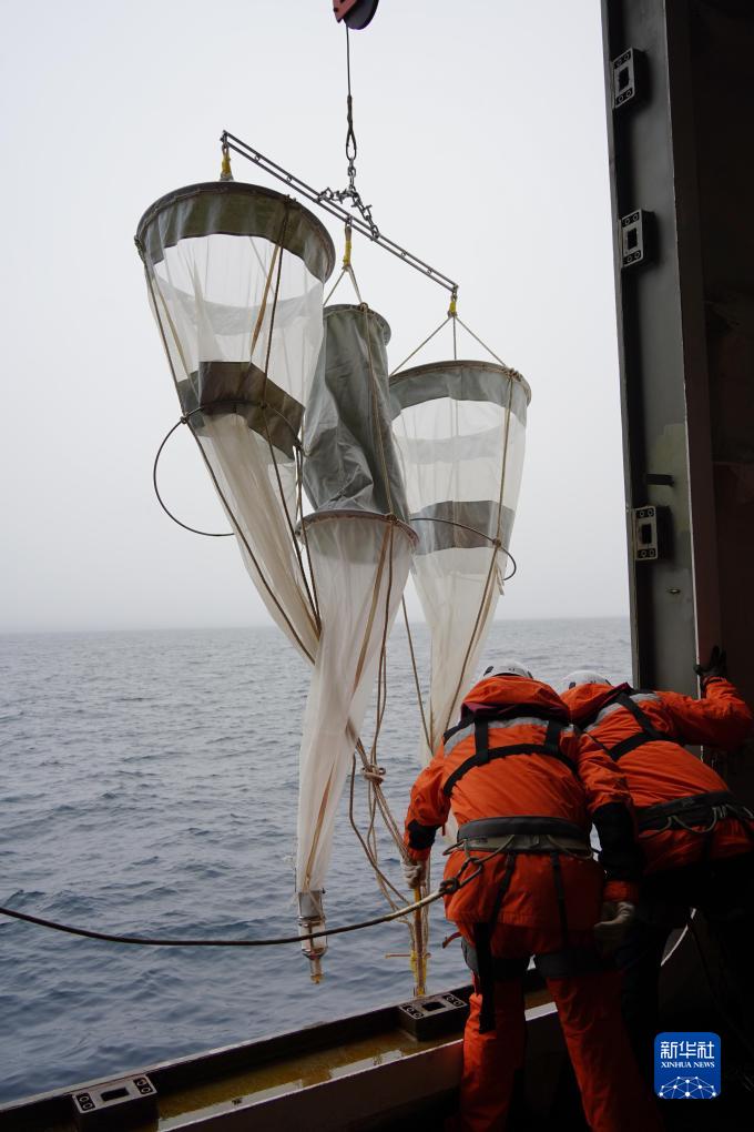 7月22日,中國第13次北冰洋科學(xué)考察隊進(jìn)行大洋作業(yè)演練,隊員準備將浮游生物垂直拖網(wǎng)布放入海。