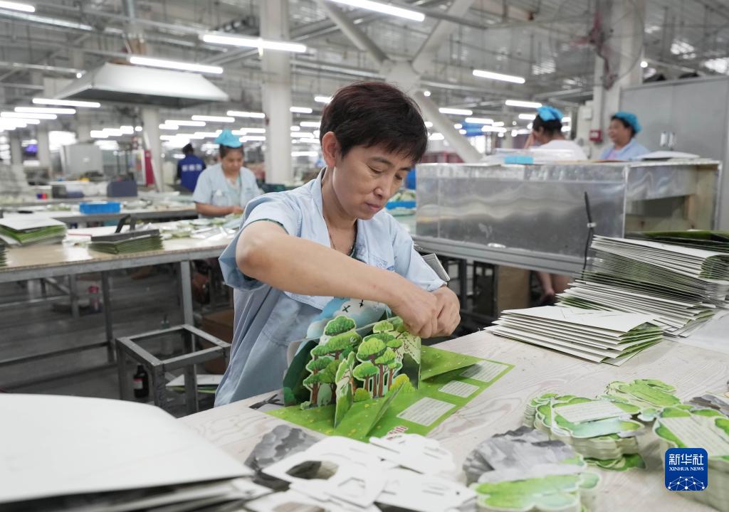 7月23日,工人在河北省肅寧縣的一家圖書(shū)印刷企業(yè)的裝訂車(chē)間工作。