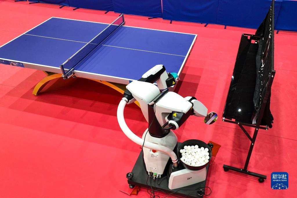 這是7月22日在成都高新體育中心多功能館拍攝的乒乓球訓練機器人。該設備通過(guò)模擬人體動(dòng)作發(fā)球,方便接球者對發(fā)球動(dòng)作進(jìn)行觀(guān)察和預判。同時(shí)可以自定義發(fā)球的速度、旋轉和落點(diǎn),針對訓練需求設定多種打法的訓練動(dòng)作體系,幫助運動(dòng)員高效精準調整訓練。