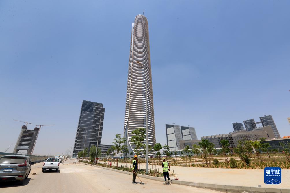 7月24日,工人在埃及開(kāi)羅以東的新行政首都中央商務(wù)區項目建設現場(chǎng)施工。