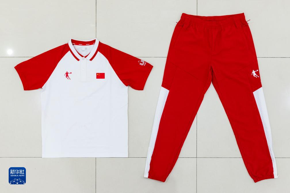 這是7月24日拍攝的第31屆世界大學(xué)生夏季運動(dòng)會(huì )中國代表團成員配發(fā)裝備中的入場(chǎng)服。