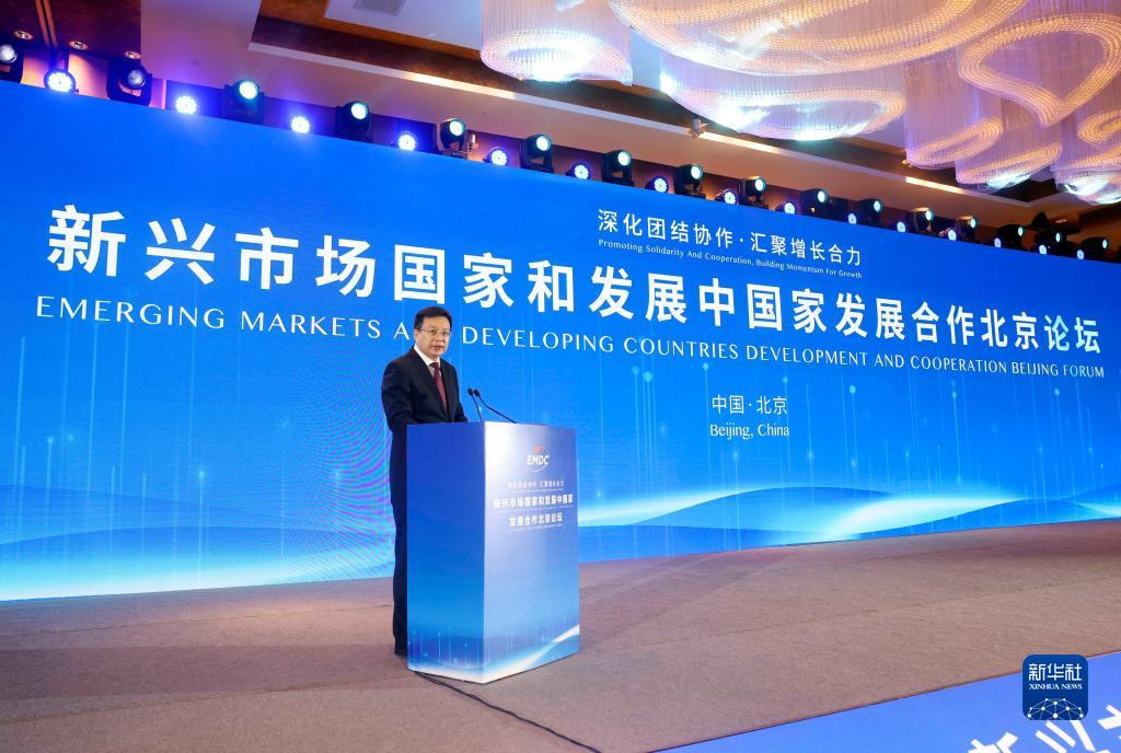 7月25日,新興市場(chǎng)國家和發(fā)展中國家(EMDC)發(fā)展合作北京論壇在北京舉行。新華通訊社社長(cháng)傅華在開(kāi)幕式上致辭。新華社記者 劉衛兵 攝