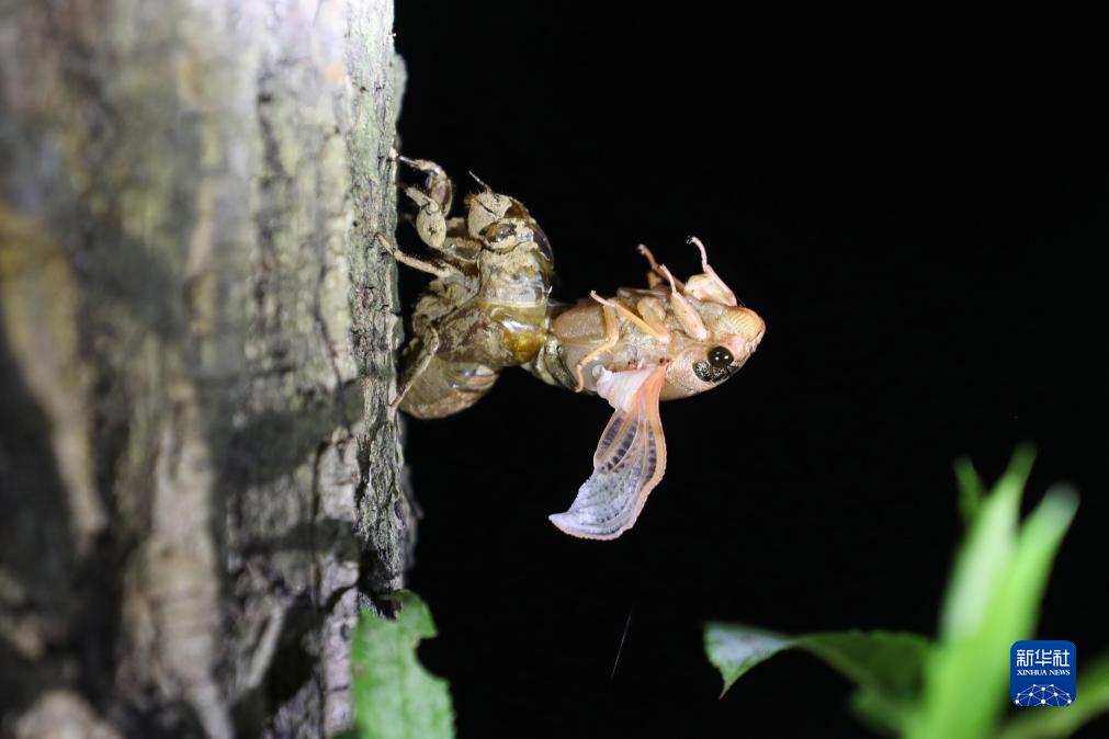 7月24日晚在寶豐縣鬧店鎮連店村一處林下金蟬養殖基地拍攝的金蟬。新華社發(fā)(何五昌攝)