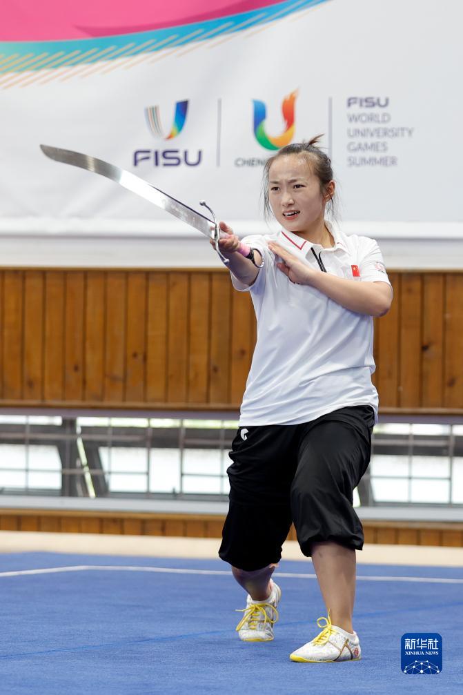 7月25日,參加第31屆世界大學(xué)生夏季運動(dòng)會(huì )武術(shù)比賽的中國選手宋翠芳在成都城北體育館訓練。