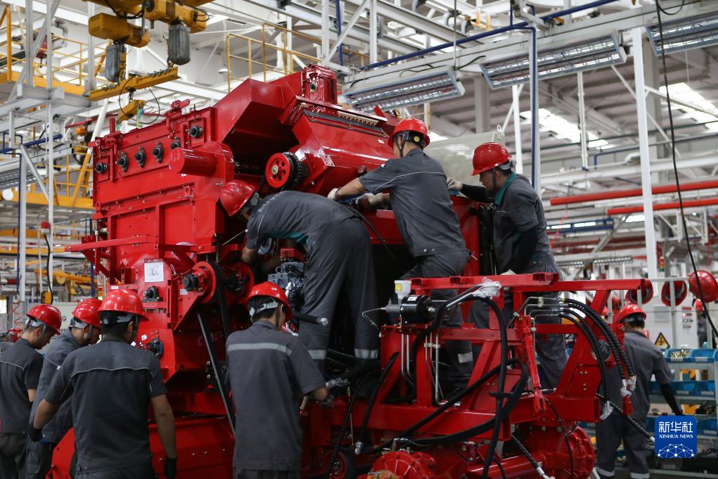 7月26日,在位于濰坊市的濰柴雷沃智慧農業(yè)科技股份有限公司,工人在車(chē)間組裝玉米收割機。