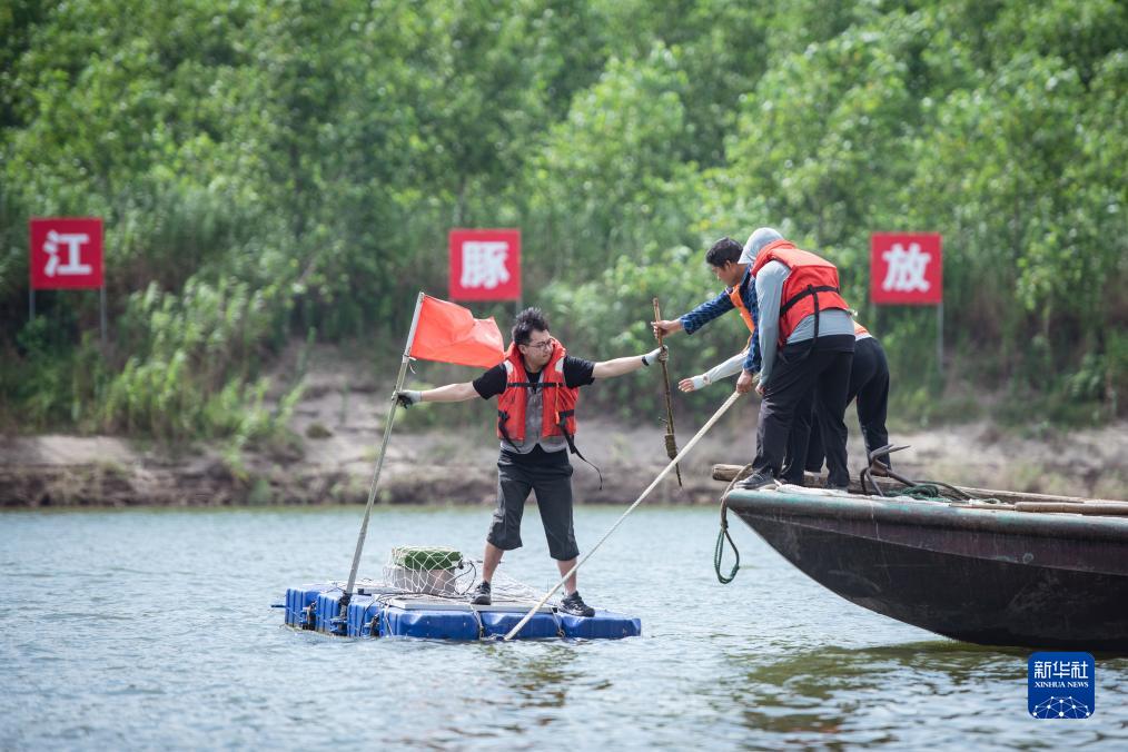 6月27日,中國科學(xué)院水生生物研究所鯨類(lèi)保護生物學(xué)學(xué)科組工作人員在天鵝洲江豚放歸適應區水域回收聲學(xué)檢測設備。