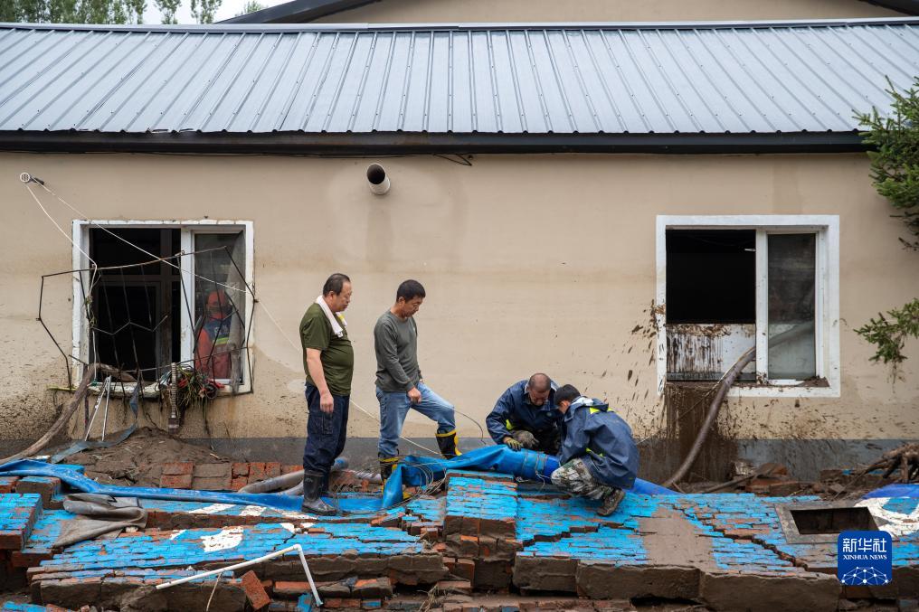 8月6日,在大海林林業(yè)局有限公司自來(lái)水供應站,工作人員在設置管線(xiàn)排水。