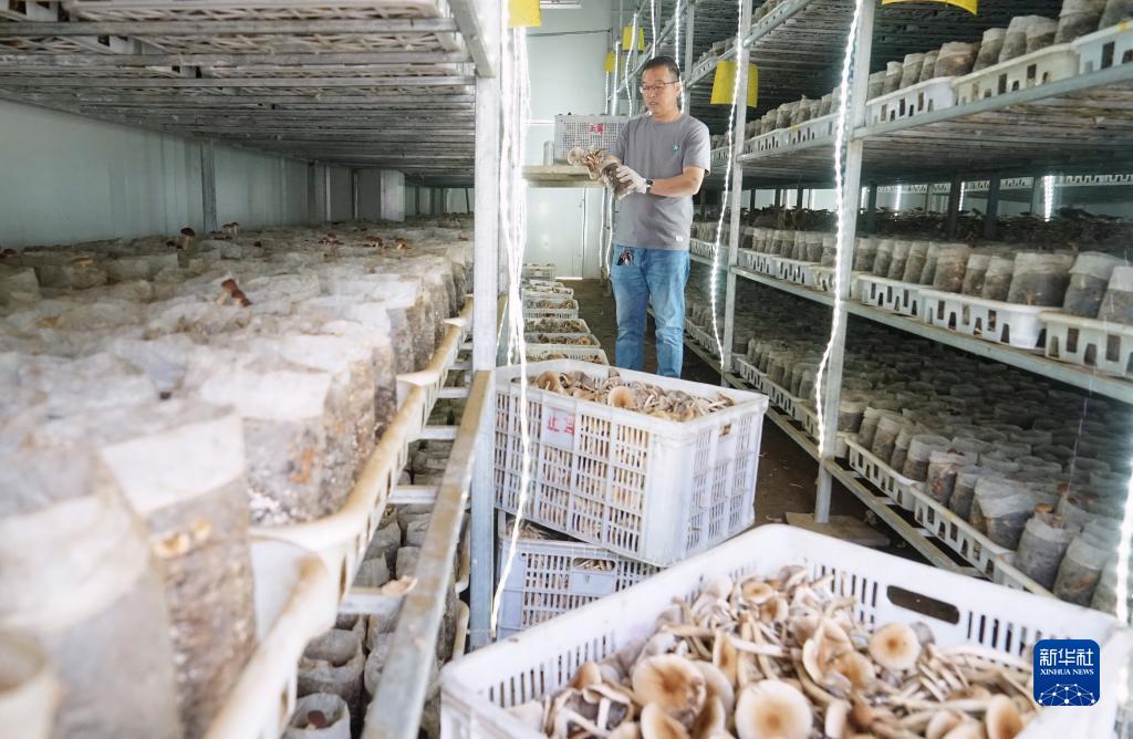 8月5日,工人在壽寧縣下黨鄉下黨村的食用菌產(chǎn)業(yè)園有機菌菇種植車(chē)間采摘茶樹(shù)菇。