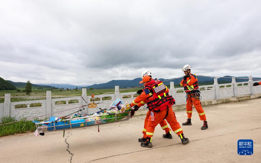 8月6日,在吉林舒蘭開(kāi)原鎮新開(kāi)村被洪水沖毀的斷橋上,吉林市消防救援支隊14名隊員架起“生命之索”,成功解救新開(kāi)村最后一名受困村民。