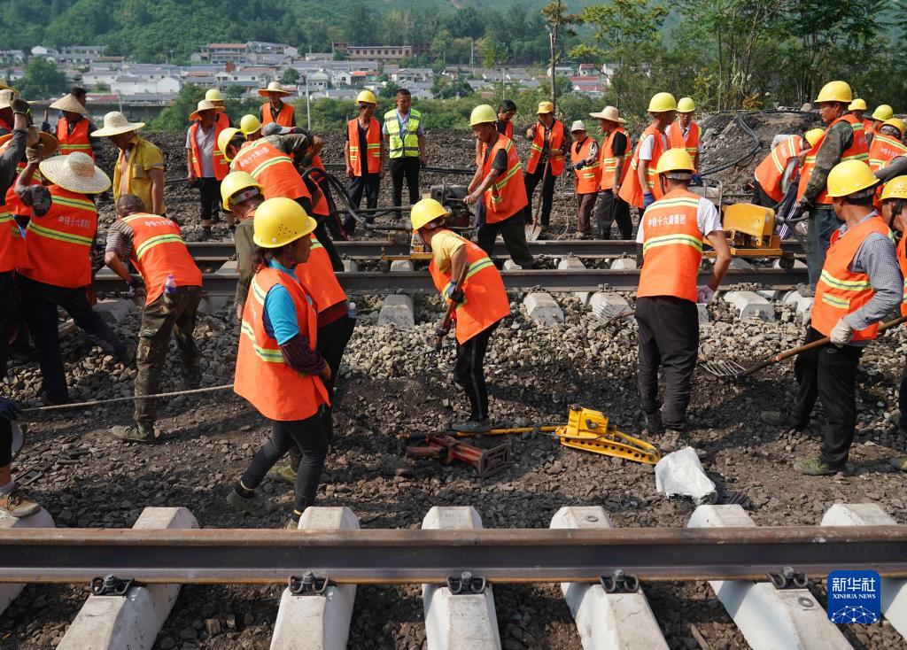 8月8日,工人們抓緊搶修豐沙線(xiàn),確保通車(chē)順利。
