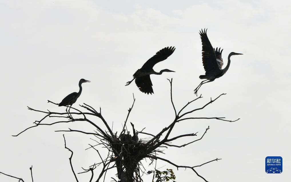 今年入夏以來(lái),大量蒼鷺、白鷺等野生鳥(niǎo)類(lèi)在山東省成武縣的文亭湖濕地內棲息。
