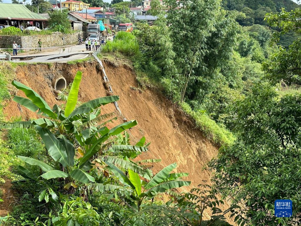 8月5日,在越南萊州省,山體滑坡致使路基垮塌。