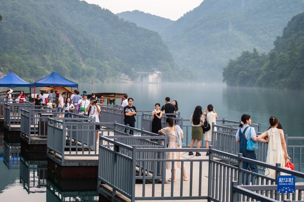 8月9日,游客在資興市東江湖風(fēng)景區游玩、拍照。