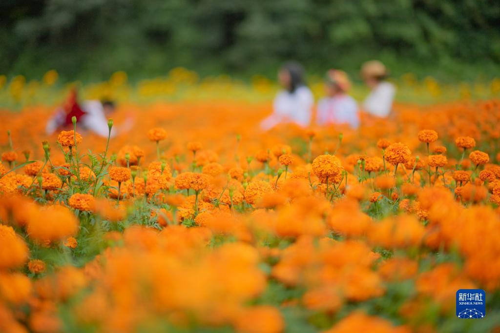 8月9日,游人在云南省文山壯族苗族自治州文山市平壩鎮賞花拍照。