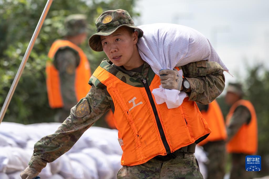 裝滿(mǎn)沙袋,扛上肩頭,疾速前進(jìn)……一名名年輕官兵身穿迷彩服和救生衣,將一個(gè)個(gè)白色沙袋筑成一道長(cháng)約兩公里的“白色長(cháng)城”。8日正午時(shí)分,在黑龍江省哈爾濱市雙城區萬(wàn)隆鄉增產(chǎn)村,來(lái)自陸軍第78集團軍某旅的800余名官兵奮戰在抗洪一線(xiàn)。