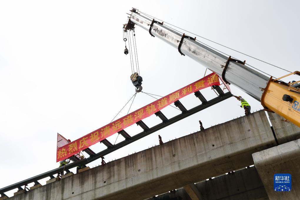 8月10日,廣東清遠磁浮旅游專(zhuān)線(xiàn)最后一榀軌排被吊裝到橫跨京廣鐵路的長(cháng)隆特大橋上。