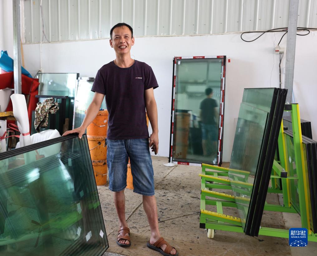 2023年7月9日,在湖南省岳陽(yáng)縣榮家灣鎮,退捕漁民陶波在自家開(kāi)的玻璃店內留影。
