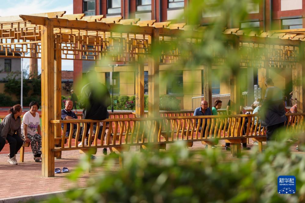 8月11日,居民在吉林省舒蘭市舒蘭三中居民安置點(diǎn)院內的長(cháng)廊里休憩。