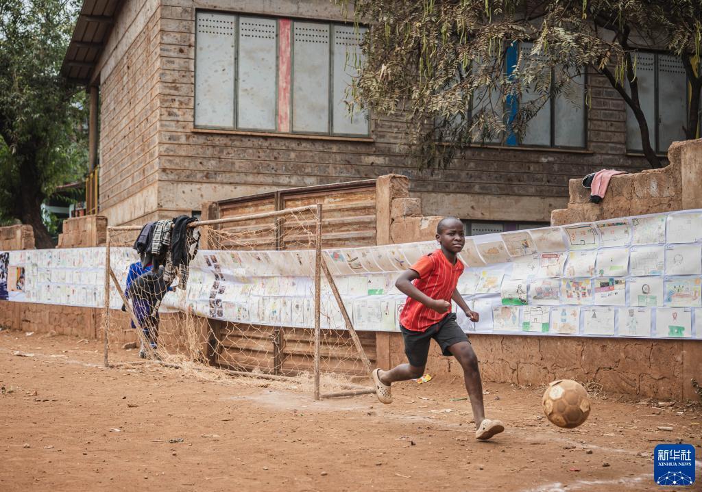 8月11日,在肯尼亞內羅畢的馬薩雷貧民區,兒童在“貧民區嘉年華”活動(dòng)上踢足球。