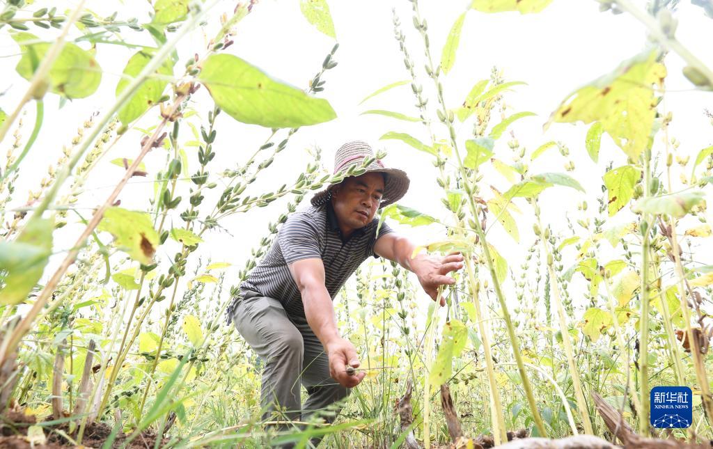 8月21日,在湖南省衡陽(yáng)市衡東縣大浦鎮,當地村民在收割芝麻。