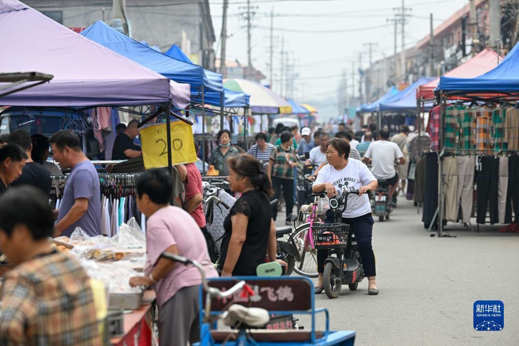 8月25日,在天津市靜海區臺頭鎮,前來(lái)趕集的村民在大集上挑選商品。