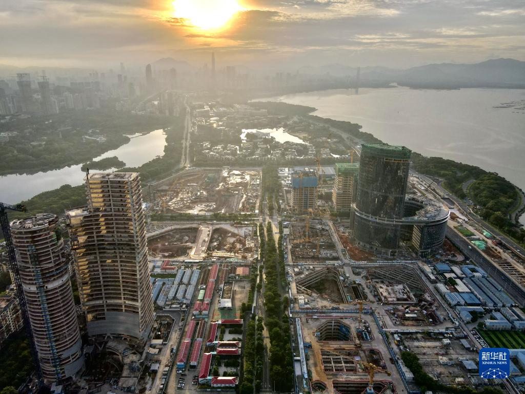 深圳灣超級總部基地建設現場(chǎng)(8月26日攝)。