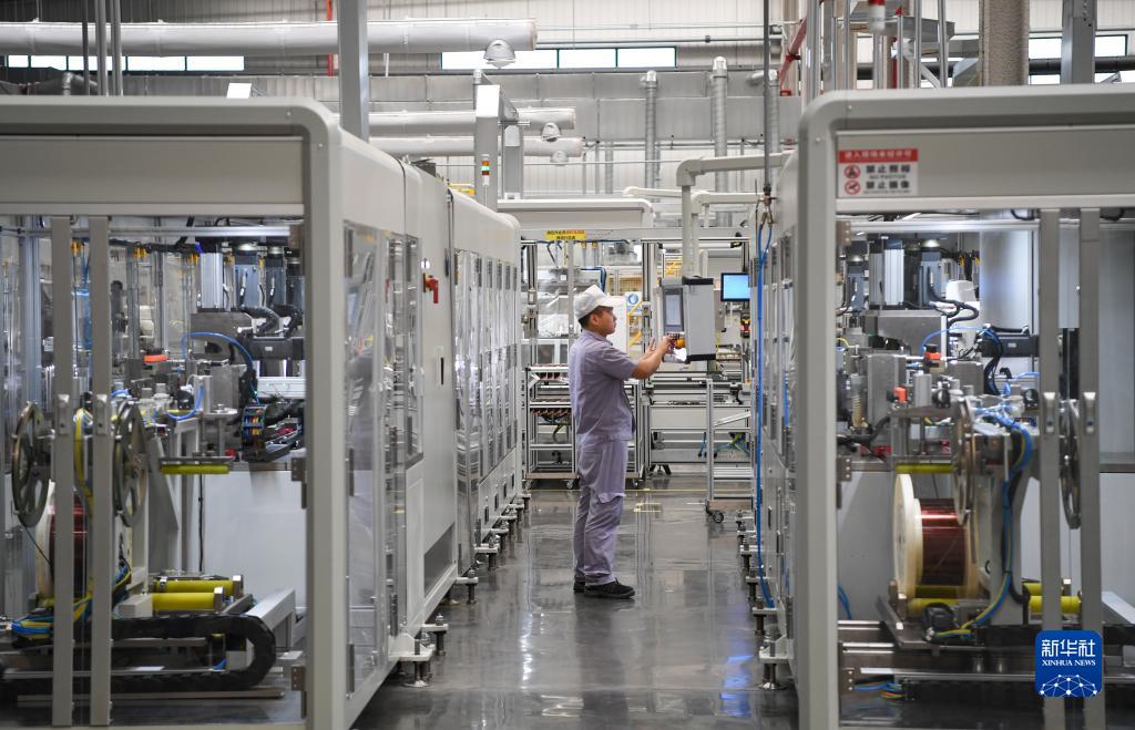 8月24日,工人在西部(重慶)科學(xué)城金康動(dòng)力電機定轉子生產(chǎn)車(chē)間作業(yè)。