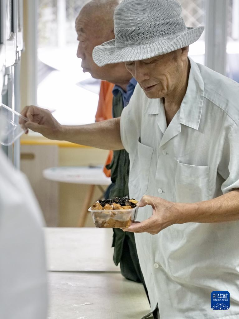 8月26日,十里堡社區的老年人在老年餐廳購買(mǎi)午飯。