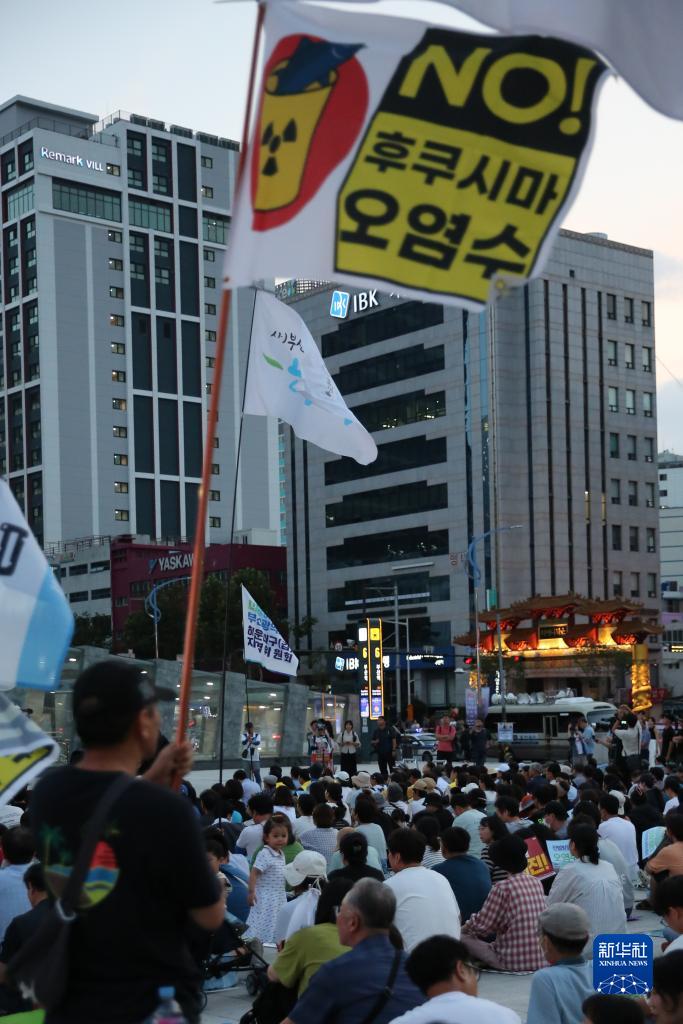 當日傍晚,韓國釜山火車(chē)站廣場(chǎng)前舉行了“阻止福島核污染水排海釜山市民大會(huì )”,數百名釜山市民參加集會(huì ),要求尹錫悅政府采取措施阻止日本向海洋排放核污染水。