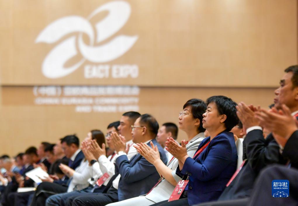 2023(中國)亞歐商品貿易博覽會(huì )在烏魯木齊開(kāi)幕,參會(huì )代表參加開(kāi)幕式(8月17日攝)。